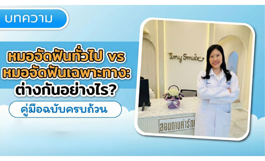 การเลือกหมอจัดฟัน เปรียบเสมือนการเลือกช่างมาสร้างบ้านค่ะ ถ้าเลือกผิด บ้านอาจจะสวยแค่เปลือกนอกแต่โครงสร้างพัง หรือสร้างไม่เสร็จสักที (เลี้ยงไข้) วันนี้ Tiny Smile จะมากางตาราเปรียบเทียบให้เห็นชัดๆ ว่าความแตกต่างระหว่าง “หมอจัดฟันทั่วไป” และ “หมอจัดฟันเฉพาะทาง” มีผลต่อรอยยิ้มของคุณและลูกน้อยอย่างไรบ้าง?